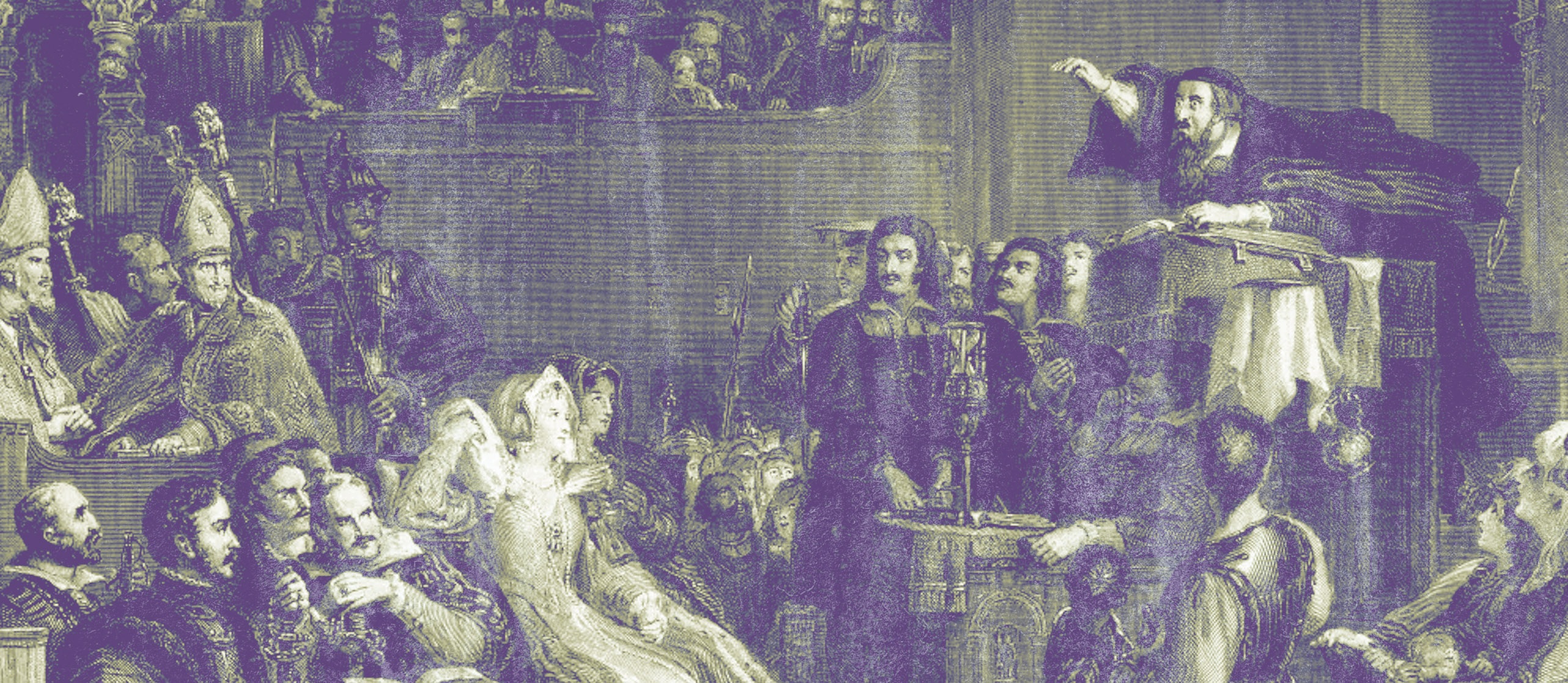 Imagem: A audácia de John Knox (de braço levantado à direita) - Reformation21